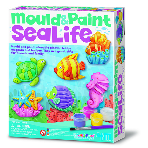 Create your own underwater inspired magnets or pins by using the mould, plaster, paints and brush included in the kit.