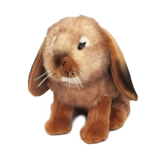 Cinnamon is a really cute realistic handmade lop eared rabbit. This sitting brown lop eared rabbit, which is also know as a lop rabbit, has soft velour ears that droop and soft caressable plush fur. The Lop eared rabbits ears are an essential thermoregulator since rabbits cannot sweat. Cinnamon makes a great bunny friend for young children and adults and is waiting for heaps of snuggles. She measures 28cm in length, 23cm in height and 17cm in width.
