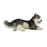 Madison is a really cute realistic medium size lying black and white stuffed plush dog. The Siberian Husky which are known as sled dogs are an outgoing, alert, intelligent, friendly and gentle dog. Madison measures approx 54cm in length from front of paw to the tip of the tail or 40cm not including tail and 24cm in height.