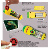 The torch is supplied with three slide discs which include 24 colour Animal photographs. Swap and change the slides easily by inserting the chosen disc, then rotate the disc round to view the fantastic colour images which project up to one metre wide. Images are easily focused by turning the lens head. This product can be used as a normal torch without the slides in place and is great for keeping on bedside tables to give comfort to children during the night. The torch measures 12cm long.