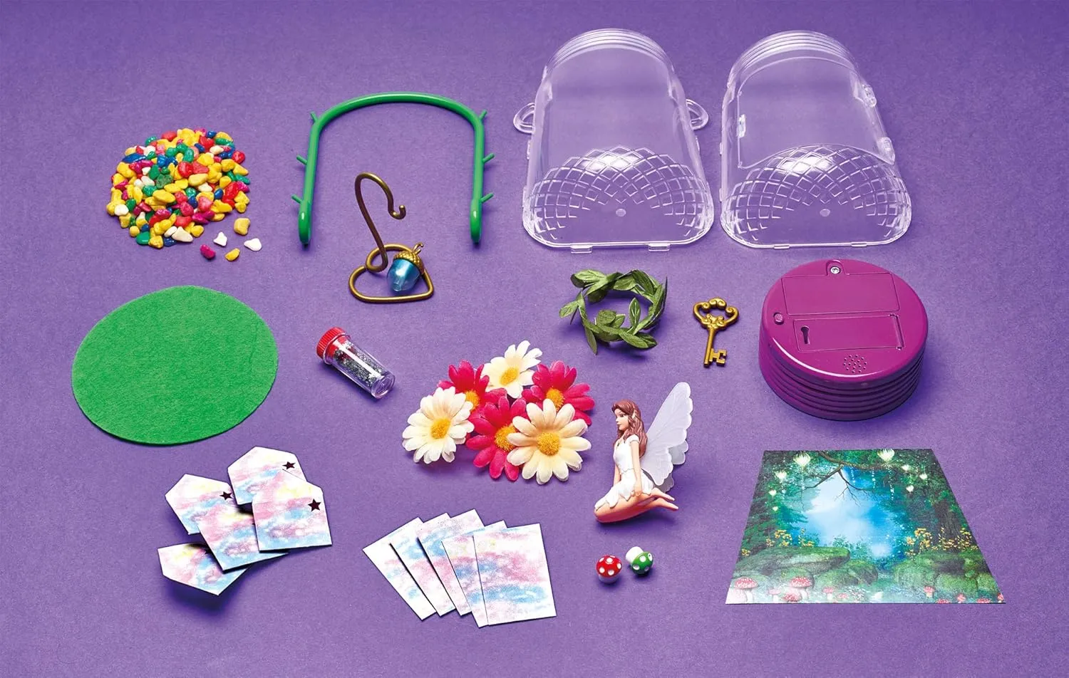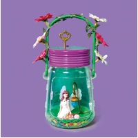 Write a special letter to your favourite fairy, with five charming mini notes and envelopes. At bedtime, or outside in your night-time garden, the colour-changing LED turns your jar into a delightful night light. Auto shut off saves battery life. Use the key in the sparkling-sound compartment to unlock a secret code. Use the secret code online to discover lots of fun, fairy activities!