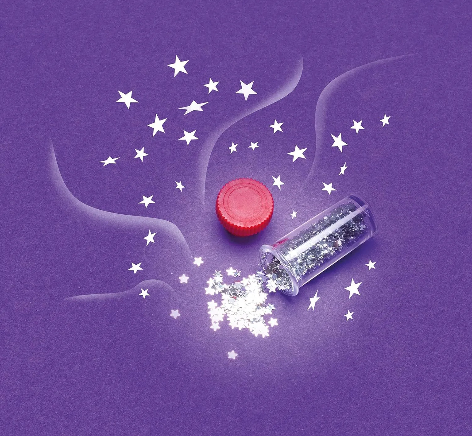 Place the enchanted forest background in your Jar with coloured stones and grass-green felt. Decorate with pretty flowers and leaf garland. Add the toadstools, acorn with love-heart stand and your adorable fairy, for a magical fairyland scene. Finally sprinkle with eco-fairy dust and make a magic wish!