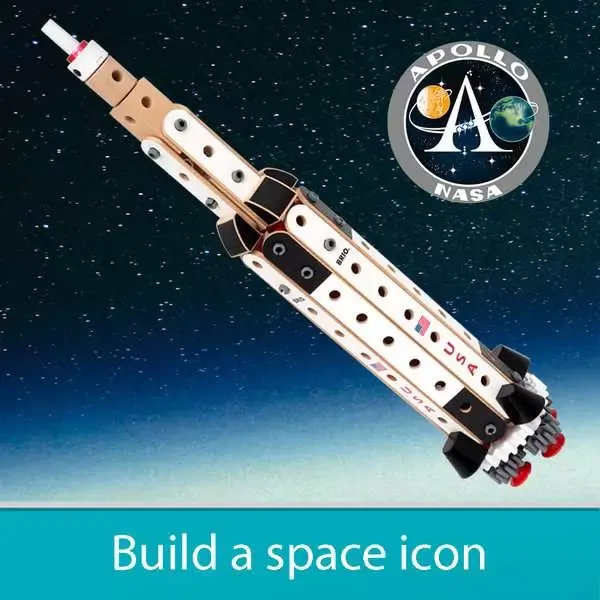 Build a space icon with the 34607 Apollo Saturn V from BRIO Builder. Standing 60cm tall and made up of 91 pieces, this NASA-inspired rocket brings space exploration to life for little engineers. The rocket divides into 3 rocket stages – stage 1 with the main boosters, stage 2 and stage 3 including a flashing nose cone. Rebuild it into an air shuttle, aircraft or use the parts for endless creative play. As with all BRIO Builder construction sets, this toy encourages open-ended, imaginative play – perfect for budding engineers and space explorers.