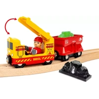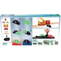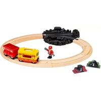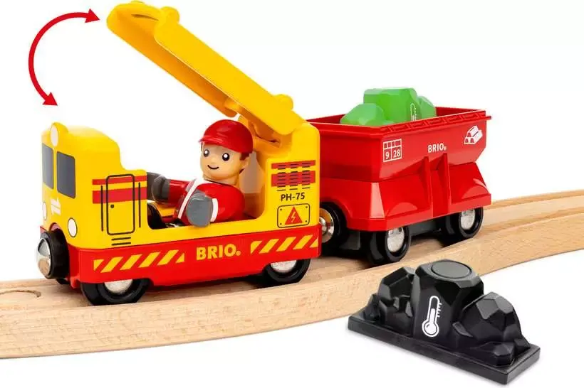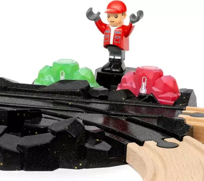 Discover the magic of the 36130 Freight Train Set with Colour Change. This 14-piece freight-themed railway set includes a yellow and red locomotive with freight car, mysterious gems and other accessories. Put the train driver on the train and drive to the quarry. Dig up the special gems and watch them change colour as they heat up or cool. Classic BRIO train fun with a special twist.