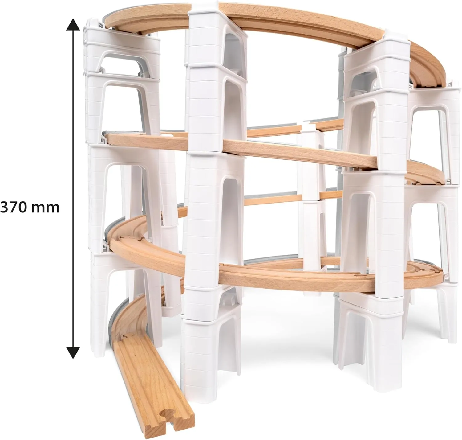 Take your BRIO World to a new dimension with the help of the large spiral set. The train set includes 73 modular rail and support pieces designed for experienced BRIO World builders to build higher and more complex tracks, such as spiral tracks, intricate figure-of-eight loops, or towering multi-stage rail layuts. Whether alone as a closed circle or to integrate a lot of height, speed and fun into another BRIO World track.
