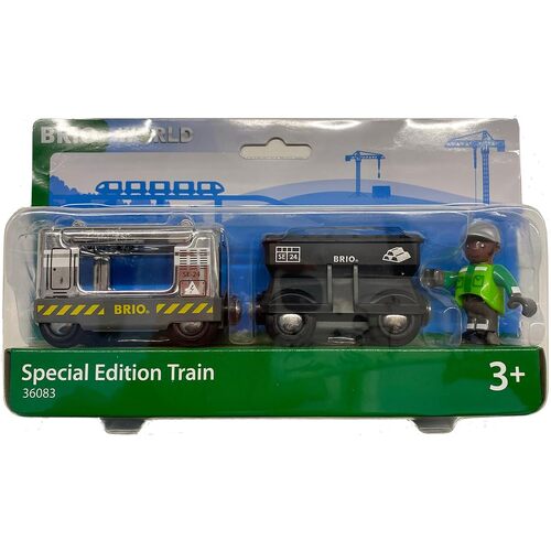 The Special Edition Train (2024) is a stunning addition to any BRIO World railway. This unique cargo-themed train stands out on the tracks with its stylish silver finish and sturdy black cargo wagon. Pop the roof open and place the driver in the seat before chugging off down the tracks with the big chunk of gold. This limited-edition toy train is only available during the year of 2024, so don’t miss your chance to add it to your railway system.