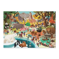 Curious kids can spend an afternoon visiting the zoo. With a great level of illustrative detail, little explorers will step into a bustling zoo scene packed with playful animals, leafy habitats and lively details that kids will love discovering piece by piece. This observational and humorous puzzle fits neatly in its sturdy storage box.