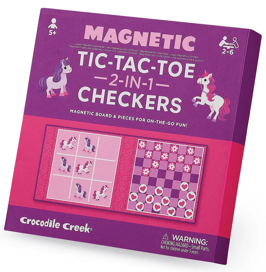 Crocodile Creek - Magnetic Game - Tic Tac Toe & Checkers - Unicorn