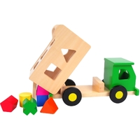 A garbage truck which opens and tips with 7 different shapes to sort. A great toy that helps kids learn about sorting their waste.
