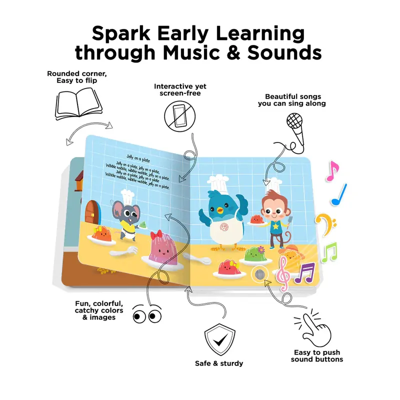 * 6 interactive buttons to press, 6 songs to listen to