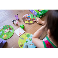 The rabbit lives in the vegetable garden, the cow is the meadow, and the frog in the pond. Where and who does the carrot belong to? The vegetable garden! Quick, land the rabbit figure on the vegetable garden card. This is a wonderful game by Djeco that helps children to develop their recognition skills while having fun! Children flip over one of the supplied cards and quickly place the correct figure on the correct card that matches the uncovered image. Average game time: 10 mins.
