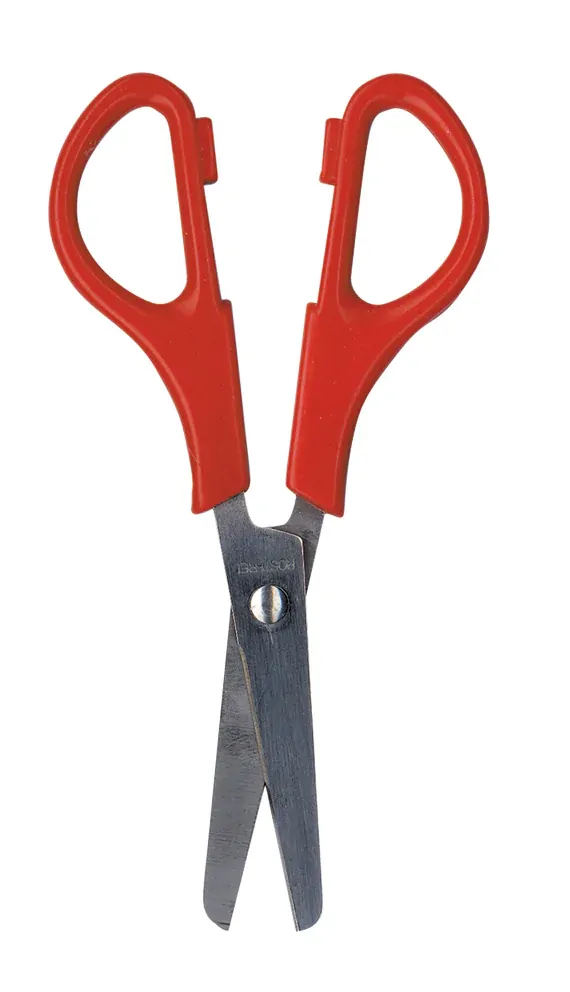 Quality stainless steel children's scissors with plastic red handles. 130mm.
