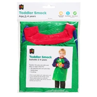 Size fits average 2-4 year olds. The Toddler Smock is 58.5cm in length from the highest point of the collar and the sleeve is 25.5cm from the underarm join to the end of the cuff.