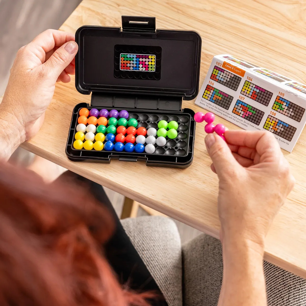 Knot your noodle! Construct caboodles of 2-D and 3-D puzzles with this brain-twisting solitaire game. Pick a puzzle from the book, set up the challenge, and then place the remaining pieces to solve the puzzle. Hundreds of possible combinations, but only one completes the puzzle!