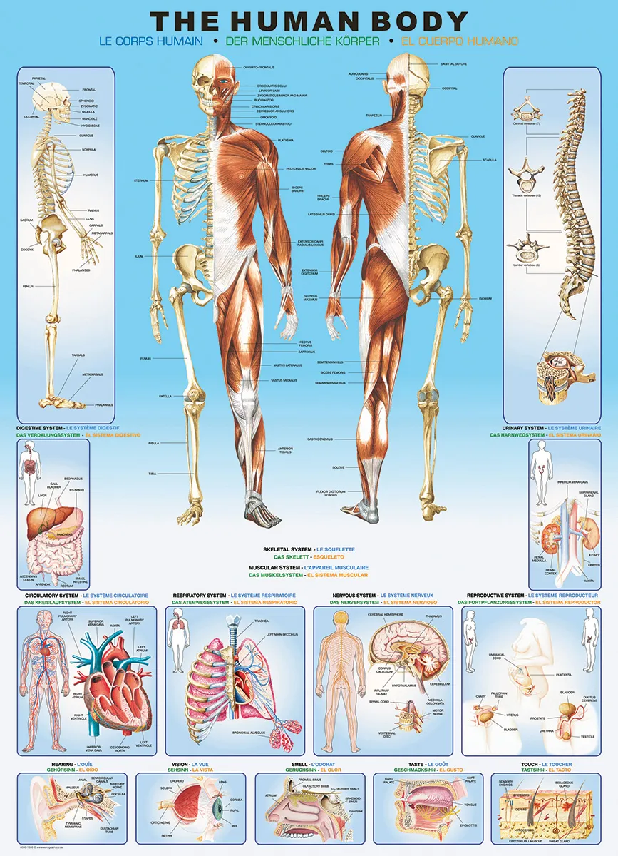 Beautifully illustrated and labelled, this puzzle includes all the major biological systems such as circulatory, repiratory, nervous, reproductive and more.