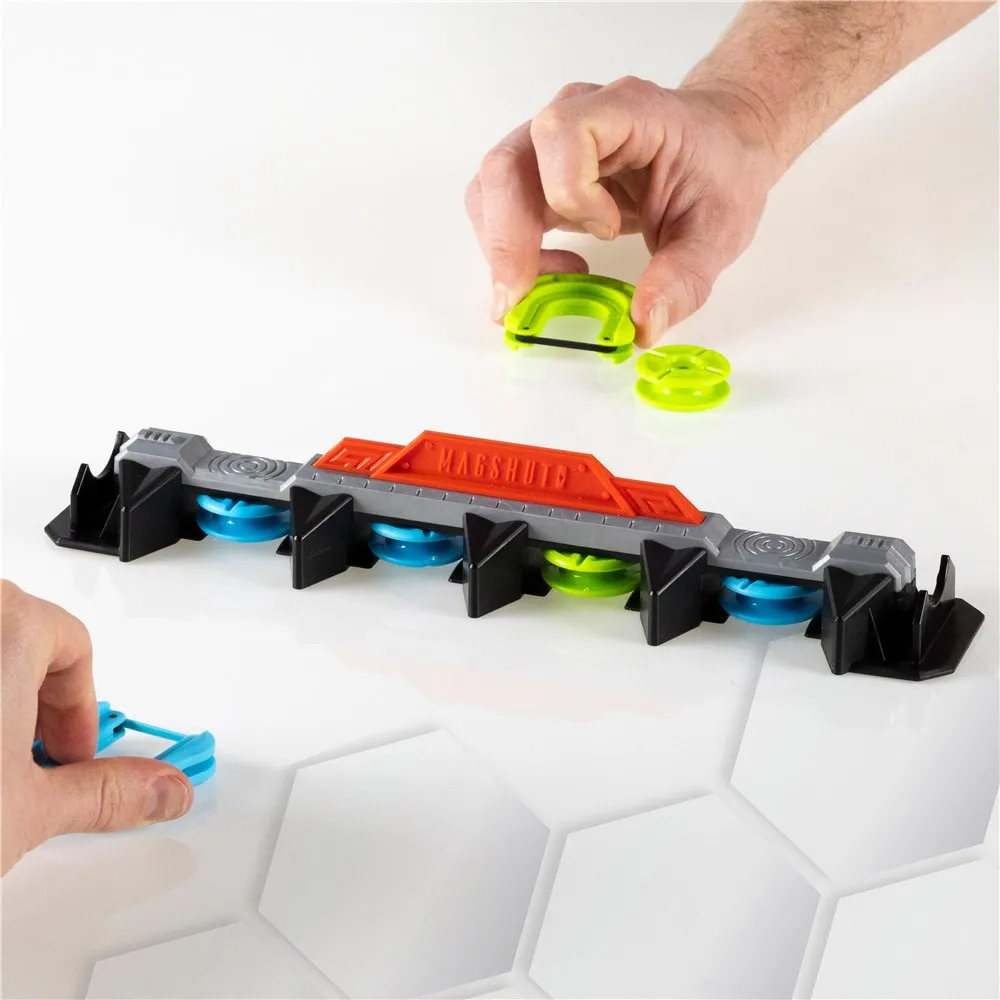 Each player gets a launcher and five Mag-Pods. Then - ready, set, LAUNCH!