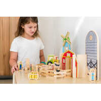This Happy Architect Farm set includes a moving windmill, a farming family, tractor, truck, fences, a red barn and a whole lot of farm animals. This 26 pieces wooden set encourages your child to use their imagination which also aids in social and emotional development as they immerse in pretend play. The beautifully illustrated images are printed using non-toxic heat transfer technology and sealed with a clear matte varnish to ensure they stay vibrant for years to come.