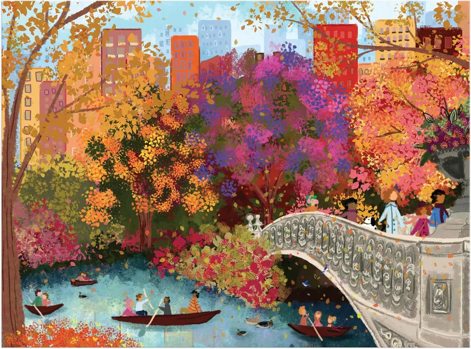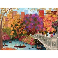 This puzzle features the stunning artwork of Joy Laforme, capturing the beauty of autumn on Bow Bridge.