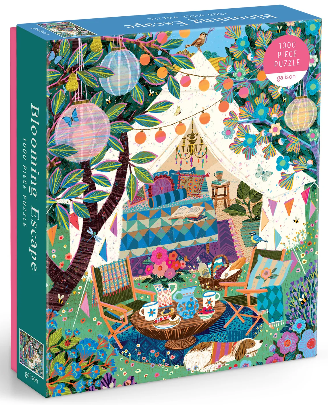 Embark on a serene retreat with the Victoria Ball Blooming Escape 1000 Piece Puzzle from Galison. This stunning puzzle showcases a dreamy glamping getaway nestled in a field of wildflowers, brought to life through the enchanting artwork of Victoria Ball. Each piece transports you deeper into a tranquil, flower-filled escape where nature and comfort meet.