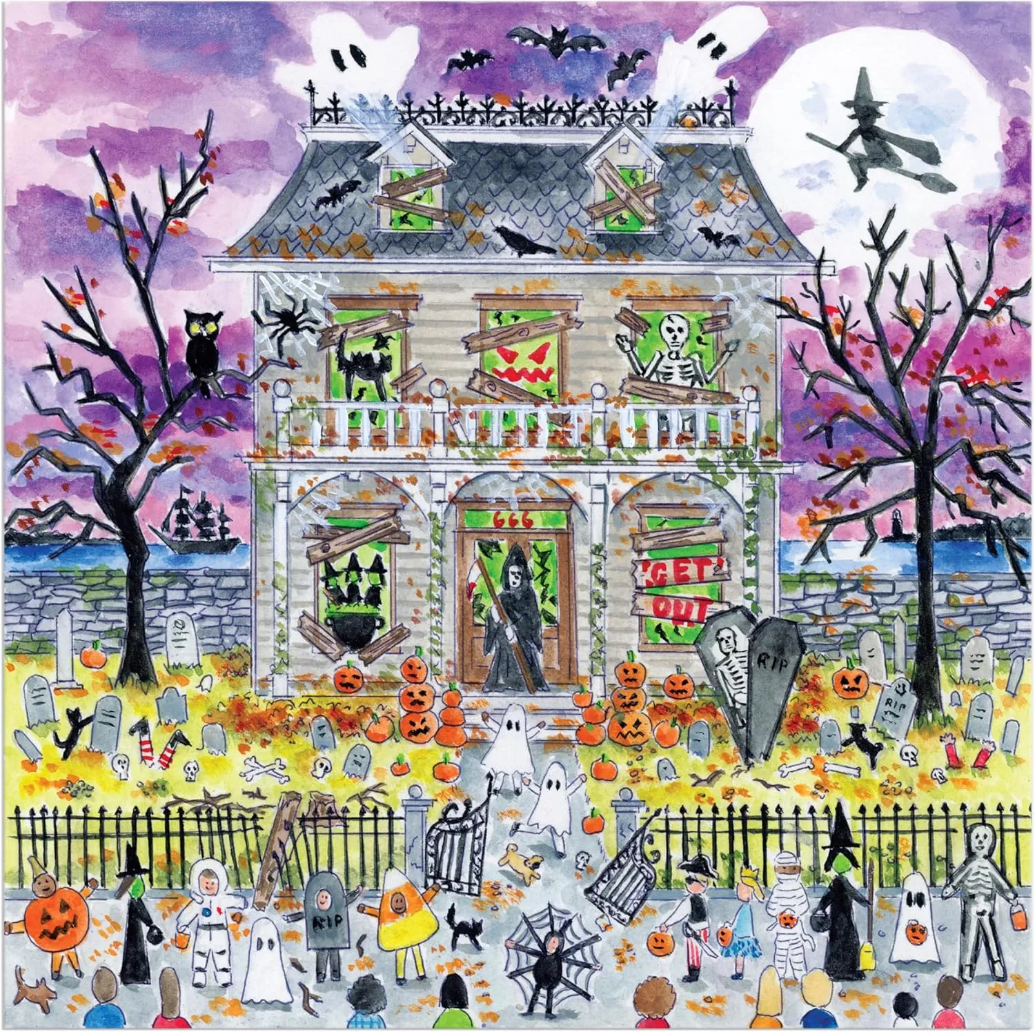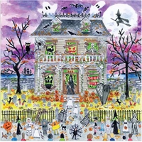 Michael Storrings Haunted House 500 Piece Glow in the Dark Puzzle by Galison features a fun haunted house scene for Halloween. Simply assemble the puzzle, turn off the lights, and watch for a glow in the dark surprise! This puzzle is just the right level of challenge for the whole family to join in on for hours of puzzling fun! The box includes an insert with the full puzzle image for reference.