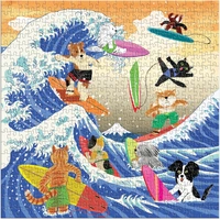 Make a splash with The Great Surf 500 Piece Puzzle from Galison, where playful pets ride the waves in a vibrant ocean scene bursting with energy and charm. This delightful puzzle showcases adventurous cats and dogs surfing a massive wave, each showing off their own style—from confident corgis hanging ten to fearless felines carving through the sea. It’s a joyful celebration of beach life and four-legged fun.