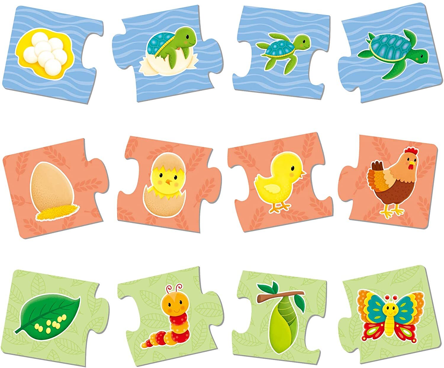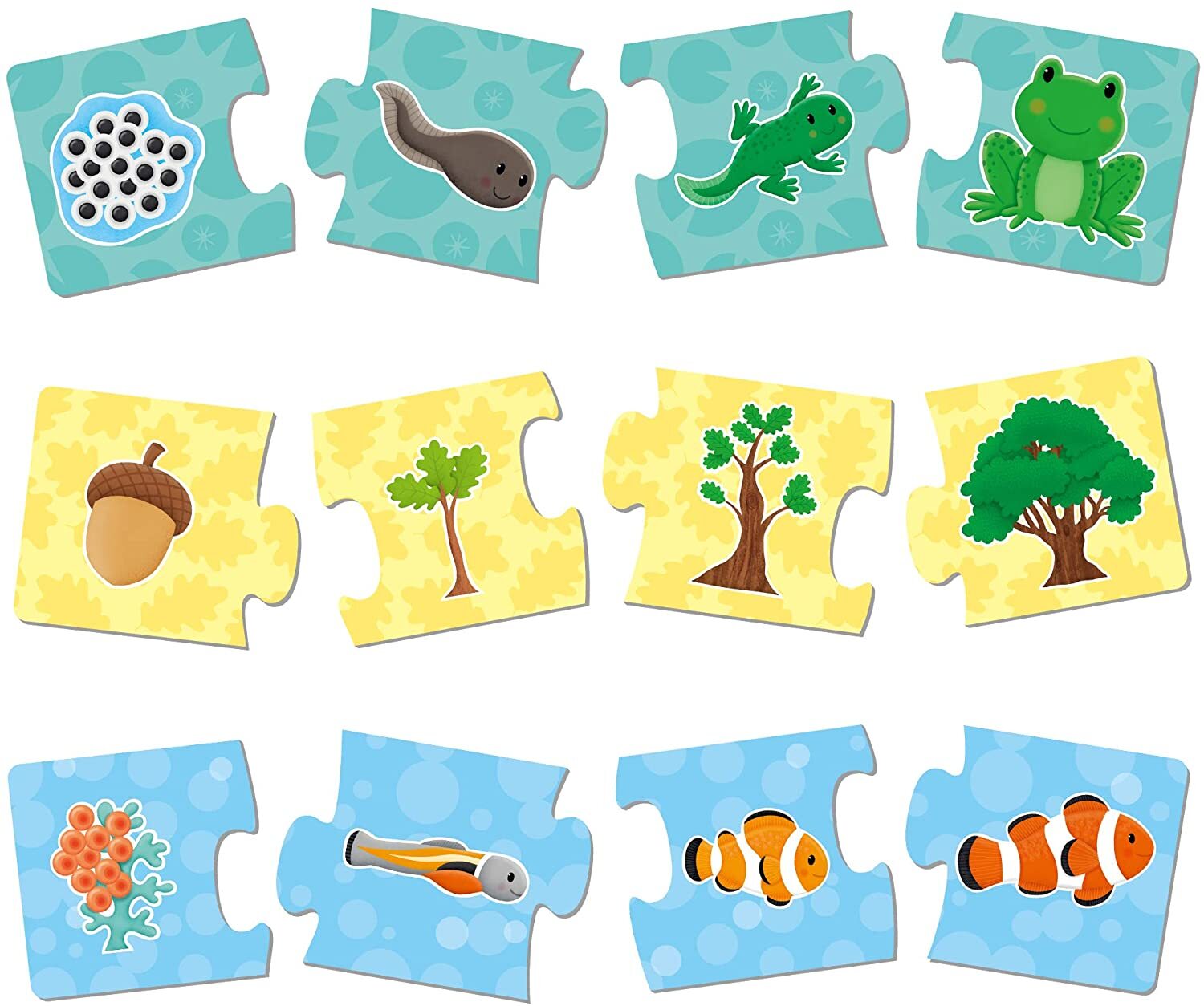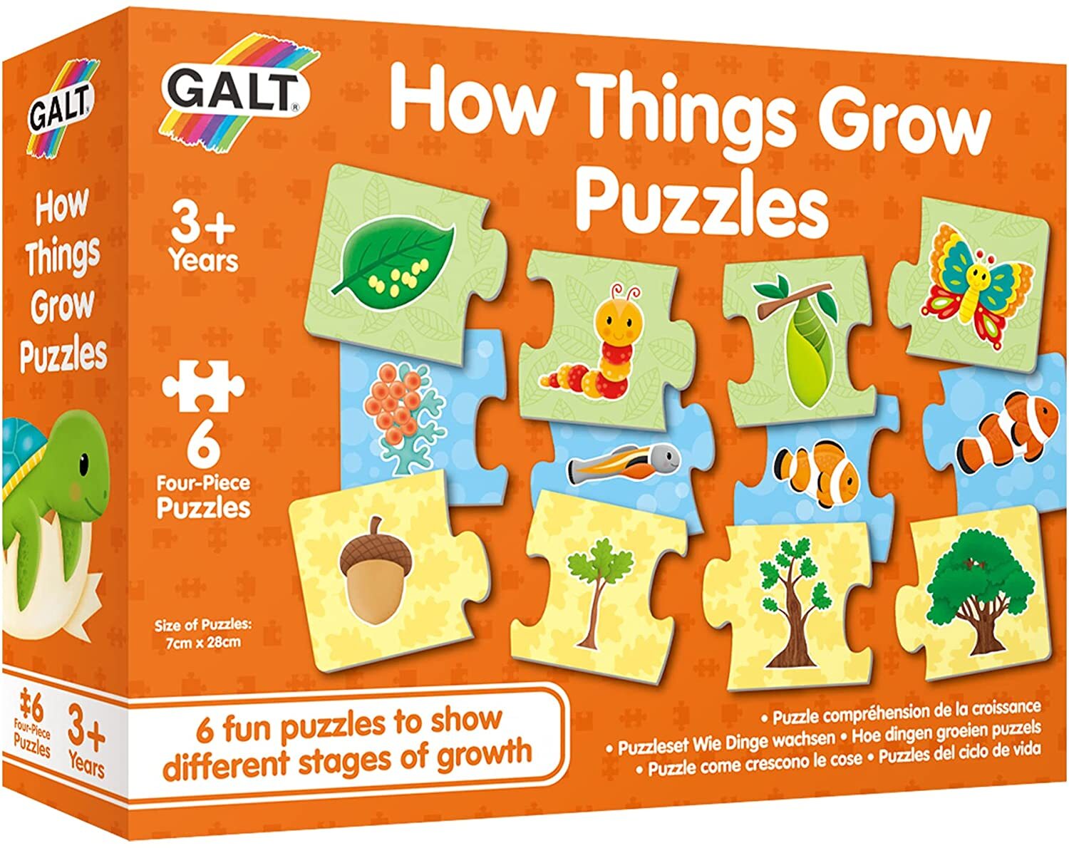 These 6 colourful 4-piece puzzles feature the exciting and varied life cycles of well-known living things. Each puzzle also provides the opportunity for fun discussions and develops matching and sorting skills. Made from thick board with a wipe-clean surface for durability.