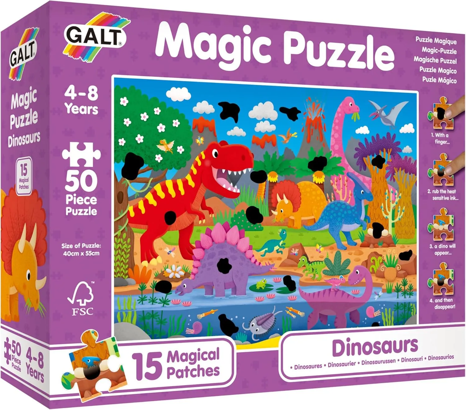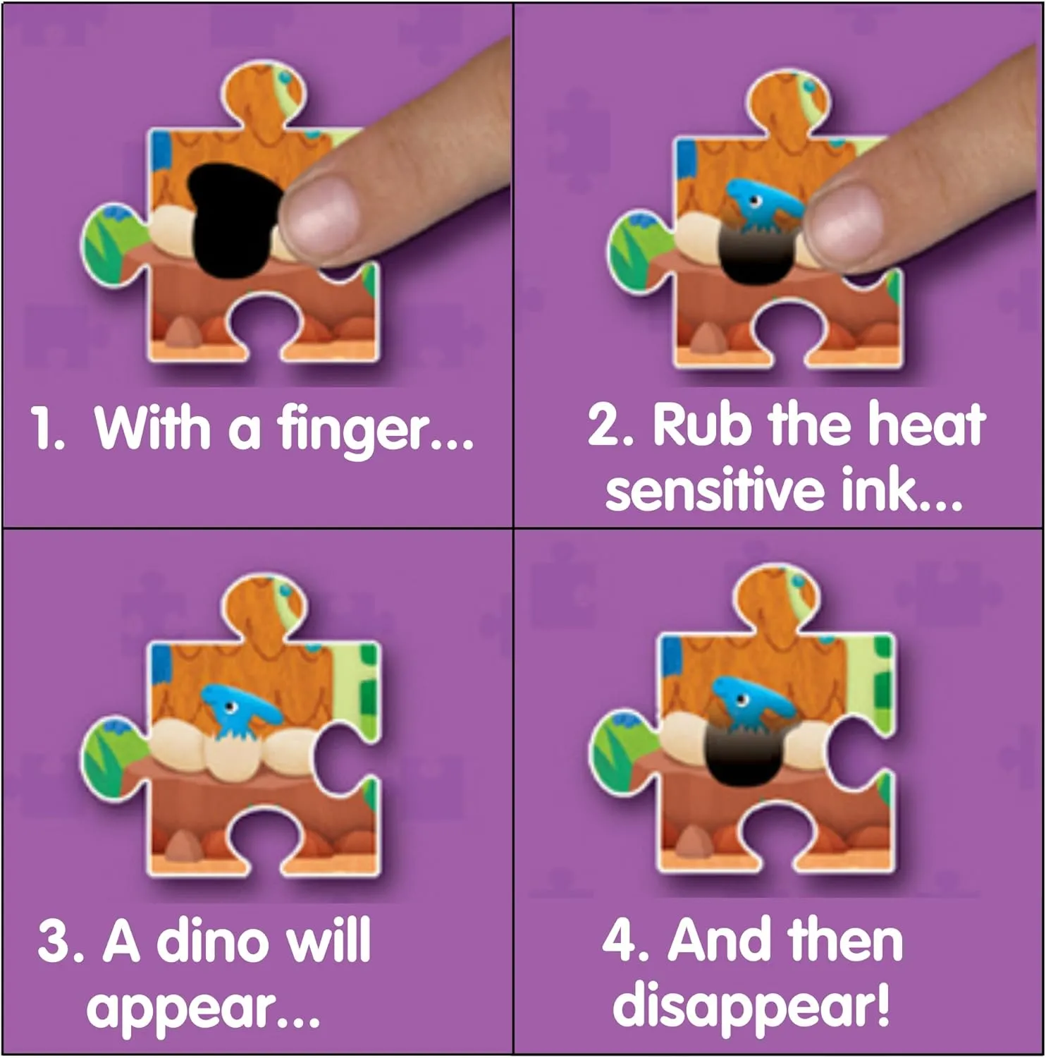 This children's puzzle is a great gift for all dinosaur aficionados. With cute prehistoric characters and colourful illustrations, it will keep little ones entertained for hours! With 15 magical patches, simply rub the heat sentitive ink with your finger and watch before your eyes as delightlful dinosaur characters magically appear and then disappear!
