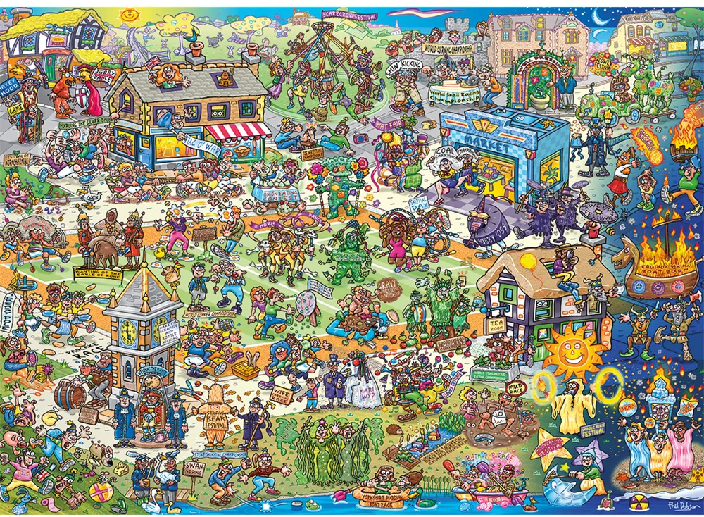 Get ready for a hilarious adventure across Great Britain in Barmy Britain, a 1000 piece jigsaw by Phil Dobson.