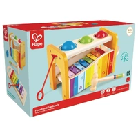 This combination of xylophone and hammer bench has easy grip handles, wooden balls and hammer. Xylophone can be pulled out and played separately.