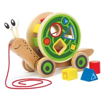 This multi-tasking snail totes a shell full of wooden blocks as he tags along behind you. Lighten the load by removing the colourful shape sorter, and he's ready to roll alone.