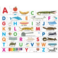 Puzzle pieces that progressively build to teach the alphabet. A tactile emery surface helps children recognise each letter's shape; then match it to a corresponding image. Each letter puzzle then builds to form a larger, rectangular alphabet puzzle. Individually sized puzzle pieces teach childern to distinguish longer and shorter words. Children learn to recognise the alphabet, read their first words and develop their fine motor skils. Features 26 two-piece alphabet puzzles. Made from chunky cardboard.