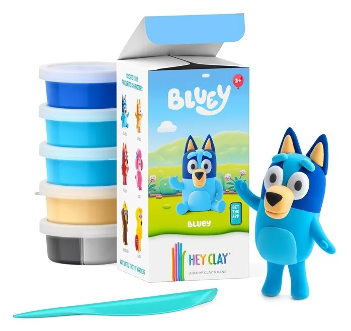 Let’s dive into a world of fun with Bluey. Become a professional clay artist! Included in the box are 5 cans of soft, lightweight, non-sticky, nontoxic, and stain-free clay for molding Bluey. Download the free app and use the included code to explore interactive, 3D step-by-step instructions! Real clay art becomes incredibly intuitive with Hey Clay.
