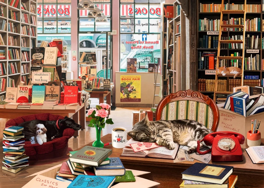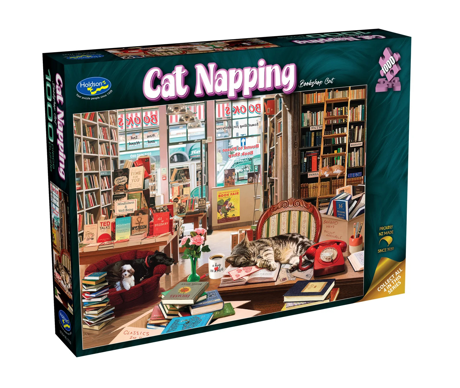 Holdson - Cat Napping Bookshop Cat Puzzle 1000pc