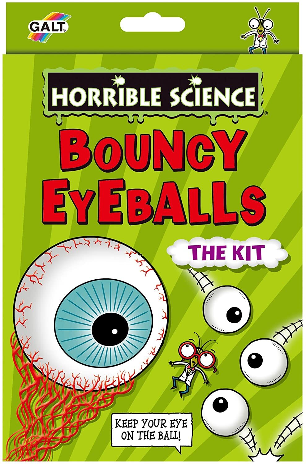 Make eyeballs that bounce, find out how balls bounce and learn jazzy juggling. Make one large eyeball and three small glow-in-the dark eyeballs.
