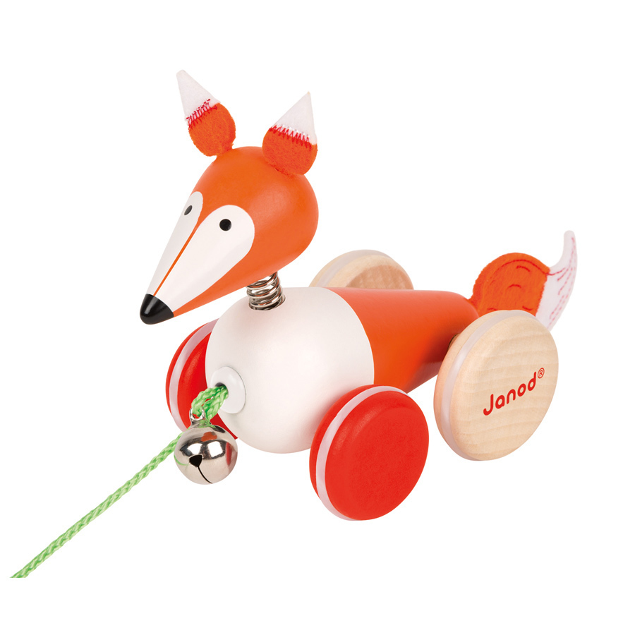 If you go into the woods today you're in for a big surprise! Cute Pull Along Fox will be waiting to say hello. Crafted from FSC wood and water painted, he has detailed stitching on his soft felt ears and tail and his head bobbles as you pull him along. With rubber grippers on his wheels, he won't be able to sneak up on you because his little bell will give him away.