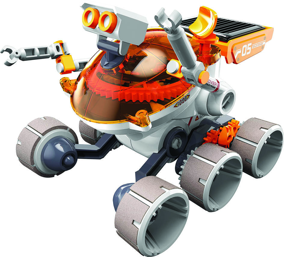 Build an all-terrain solar powered rover vehicle. Equipped with 6 wheels, robust enough to move over bumpy terrrain.