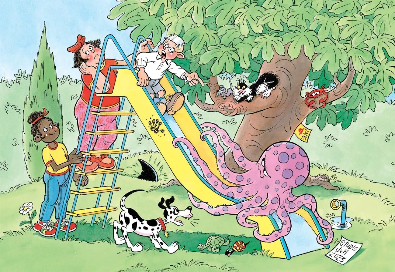 Jan van Haasteren Junior introduces children to the absurd world of these famous puzzles. They take their first steps into the humorous illustrations of Jan van Haasteren and make progress with different piece counts and difficulty levels.