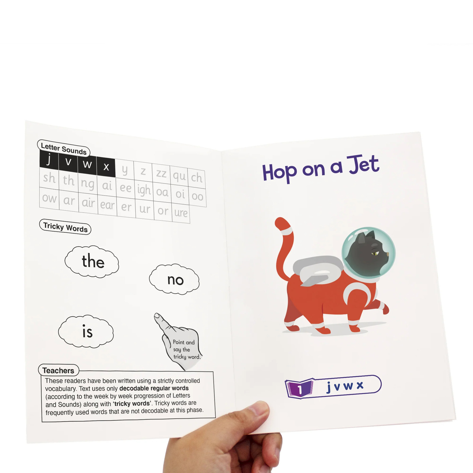 Phase 3 (Phonics) set has been written specifically for the progression of Letters & Sounds. Phase 3 (Phonics) introduces the next 22 letter sounds. Phase 3 readers will follow students week-by-week through the programme providing them with text-based context to practice their emerging reading skills. Every story has been written with a strictly controlled text so that students are only exposed to those letter sounds that they have previously learnt. Furthermore, tricky words are only included after they have been introduced. Build confidence in older, struggling readers as they master the phonics code. Can also be used alongside other popular schemes as book-banded reading levels are provided.