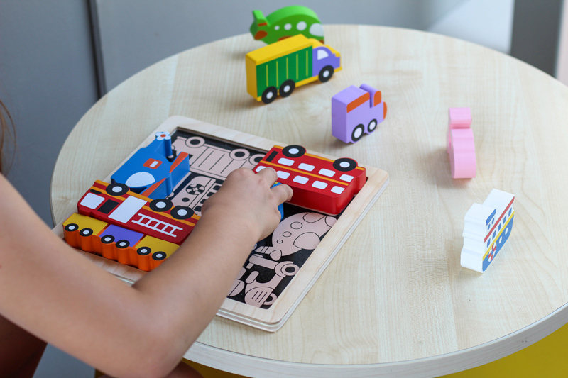 Bright, chunky vehicles puzzle. Fantastic solid shapes for young hands to manipulate. Puzzles are a great opportunity to grow your childs gross and fine motor skills, hand and eye coordination, problem solving, shape and colour recognition skills.