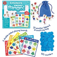 This set includes everything you'll need to play including 6 double-sided bingo boards, 20 double-sided emotions tokens, 100 counters and instructions, plus, a cloth storage bag to keep it all together.
