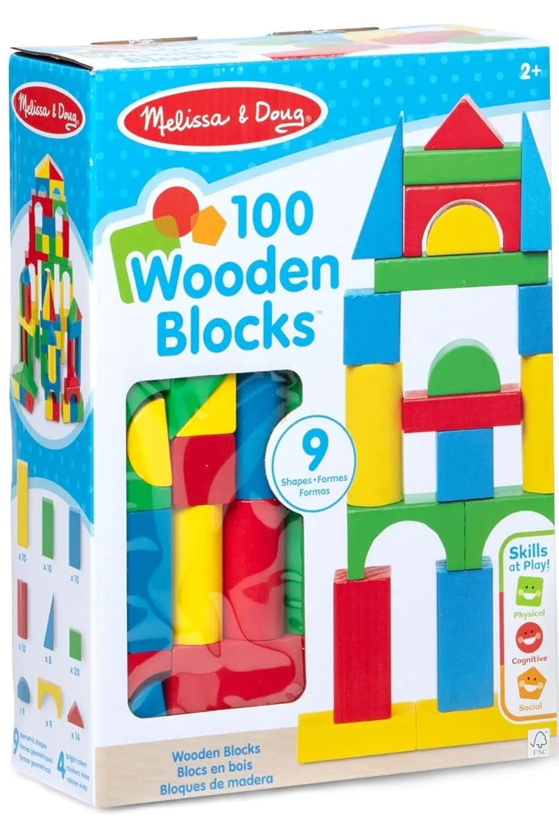 This favourite collection of 100 wooden building blocks comes in four colours and nine shapes. Your little builder will delight in stacking, building and knocking down in countless colourful combinations, and you'll know your child is gaining invaluable practice with fine motor skills and dexterity, colour and shape recognition, and pre-maths skills.