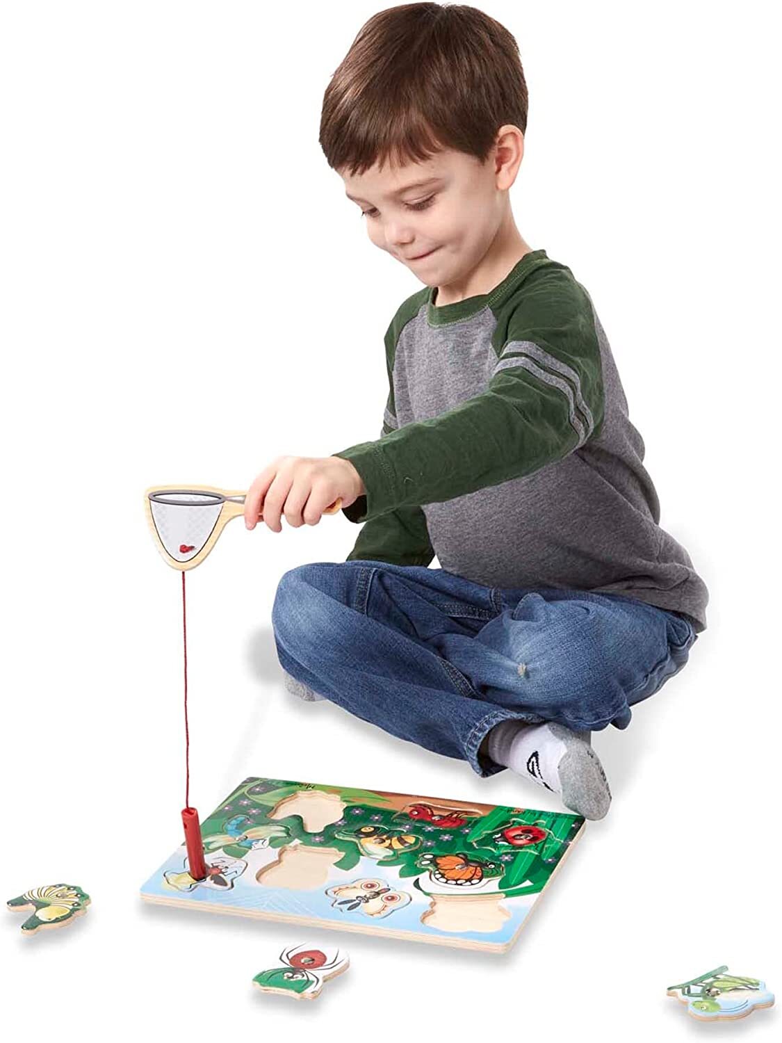 Includes 10 magnetic bug pieces and magnetic net.