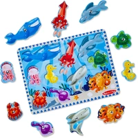 The ultimate catch and release fishing program, this magnetic wooden puzzle game features aquatic animal artwork. Use the magnetic fishing pole to catch the ten, colourful sea friends from the game board. Enjoy the challenge of returning them to the depths! A creative way to encourage eye-hand and fine motor development.
