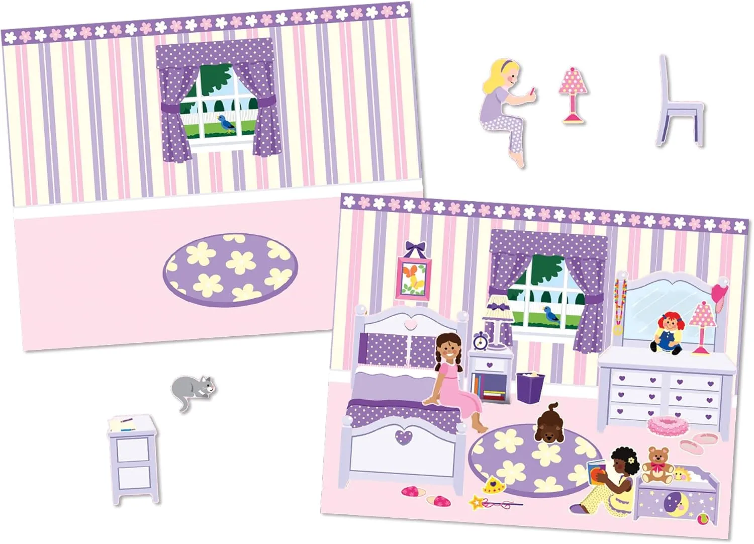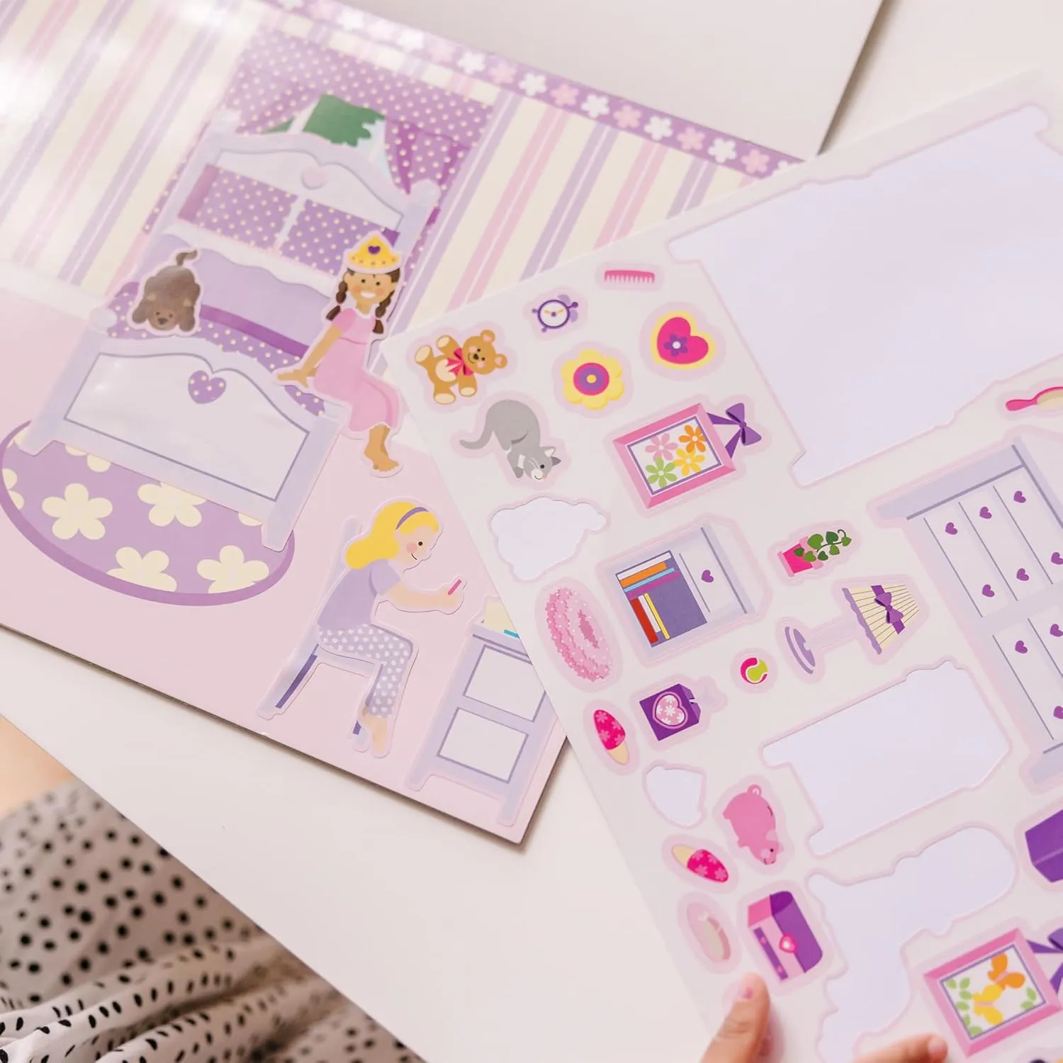 The reusable stickers in this set cling securely to the sturdy pages, then peel up easily when you're ready to make a change. 5 glossy, full-colour pages feature 5 rooms to decorate; 5 coordinating pages of accessories include 175+ stickers to furnish your rooms.