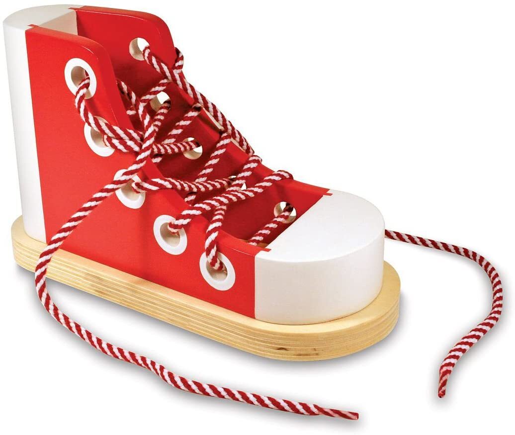 I can do it myself! Few things will give your child more satisfaction than mastering shoe lacing and tying skills. This wooden, high-top sneaker will make practising fun and help your child reach this developmental milestone.