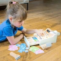 Open your first store with this wooden cash register from New Classic Toys. "Cha-ching"! Little ones will love learning early maths and reasoning skills when it is combined with fun. Will you be paying with cash or card today? And who's next in line? Playing with this cash register is a great way for children to develop social and speech skills as they run their very own store. It also inspires imaginative play and allows storytelling skills to flourish. Role playing is an effective way for children to make sense of the world around them.