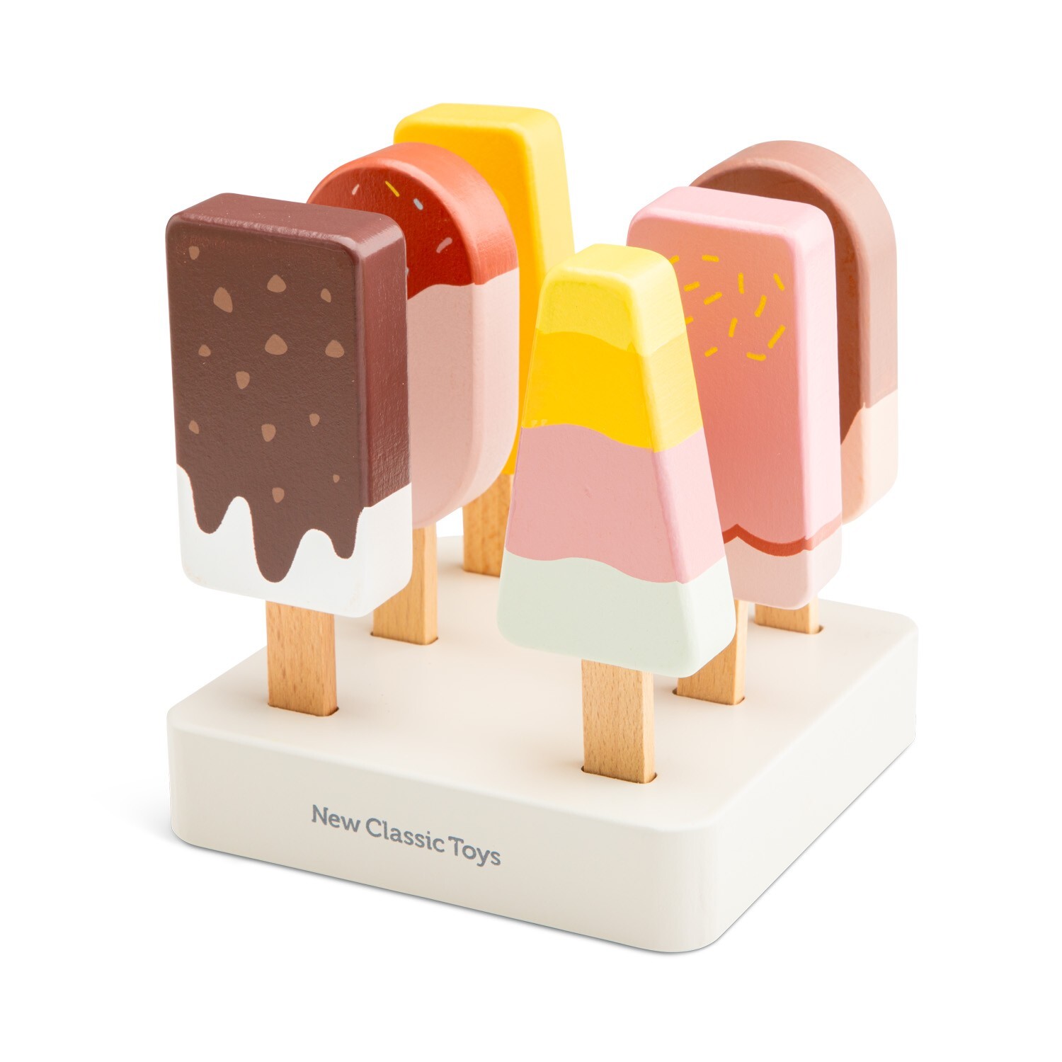 This wooden ice lollies set from New Classic Toys is the perfect treat for imaginative play. This charming set features six wooden ice lollies, which all fit in the wooden base for easy storage and display. Whether hosting a picnic, running an ice cream stand, or simply enjoying a refreshing treat, these wooden ice lollies inspire endless pretend play possibilities.