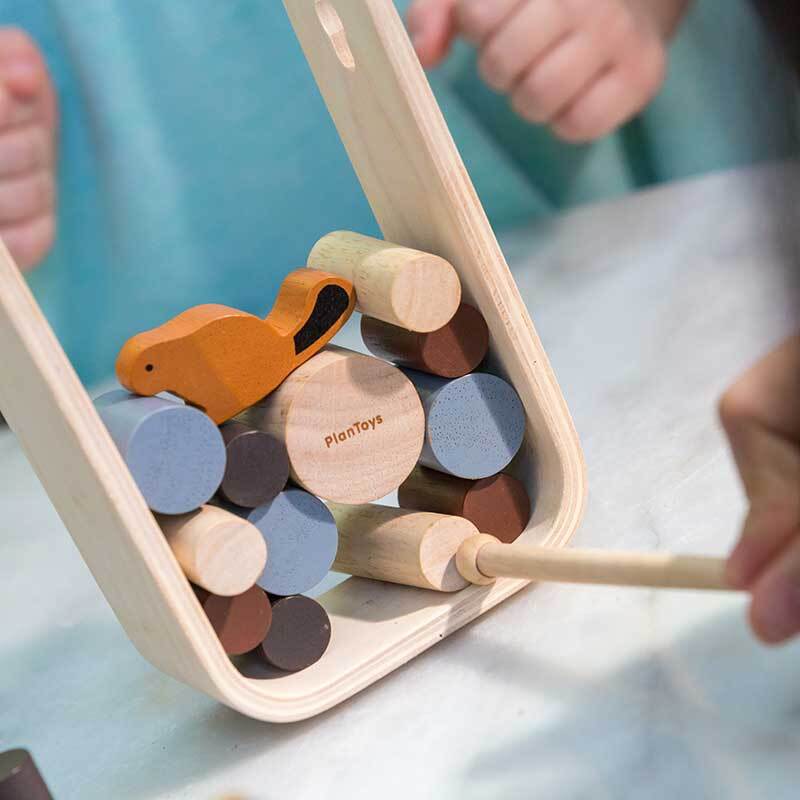 Lets help the beaver at the dam! Use the stick to push out a log without making the beaver fall. Each player takes turn. The person who can save the beavers life wins. This game helps children develop hand-eyes coordination and strategic skills.
