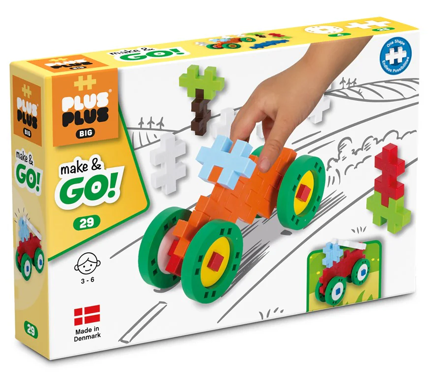 The Plus-Plus BIG Make & GO set contains everything you need to get started with Plus-Plus BIG GO and to make various types of vehicles. This set includes 4 BIG GO wheels and 25 pieces. A Guide Book gives step-by step instructions.