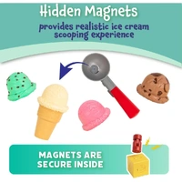 - FOR LITTLE HANDS: This fake food set is a fun way to introduce toddlers to kitchen play. The magnet ice cream toy helps develop fine motor skills as children scoop and stack flavours.
